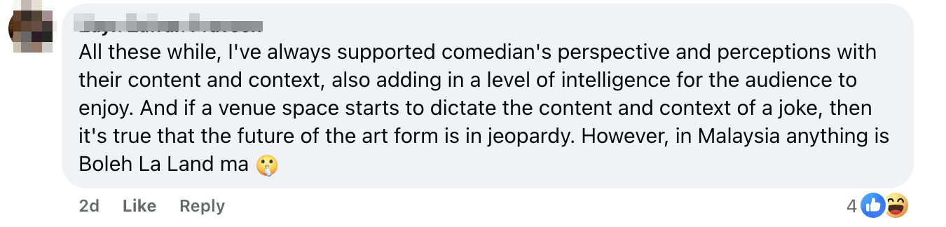 Leong's post has sparked a conversation about the state of the arts in Malaysia, particularly the limitations placed on comedians, filmmakers, and other creatives