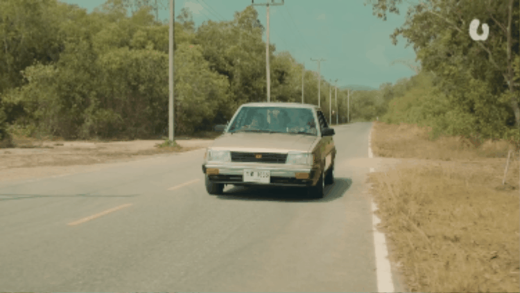 Here she suddenly comes across the drivers who left them stranded, both of them lugging around a large Bluetooth speaker. Suddenly a Thai love ballad begins to play, and her husband appears behind her bearing a Mandarin orange.