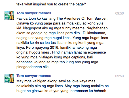 When asked what inspired him to create this #Hugot fan page this is what he said:
