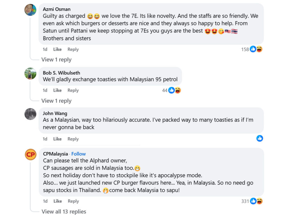 "Guilty as charged. We love the 7E. It's like novelty. And the staff are so friendly. We even ask which burgers or desserts are nice, and they are always so happy to help. From Satun until Pattani, we keep stopping at 7Es. You guys are the best," read a top comment.