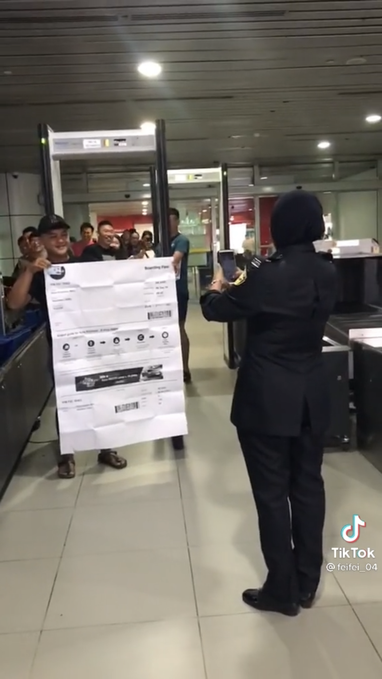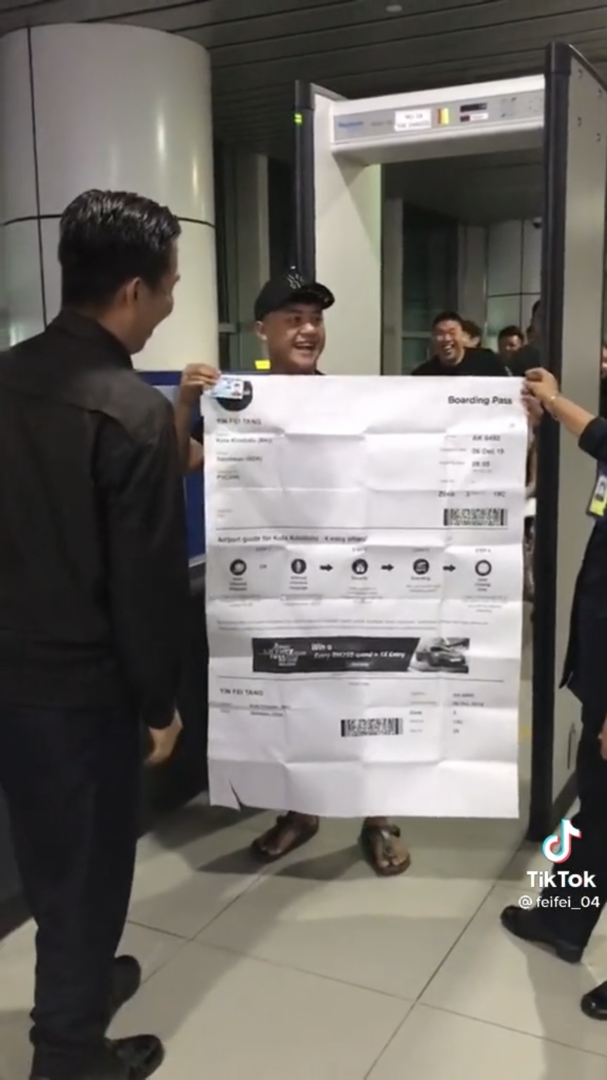 Man Brings Giant Boarding Pass To Sabah Airport & Makes Security Officers Laugh In TikTok