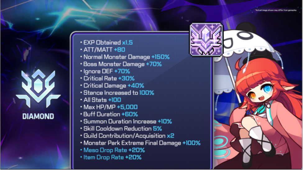 It comes packed with massive permanent stat boosts like up to 1.5x EXP, +70% Boss Damage, +30% Critical Rate, +20% Meso Drop Rate, +20% Item Drop Rate, and more to boost your progress.
