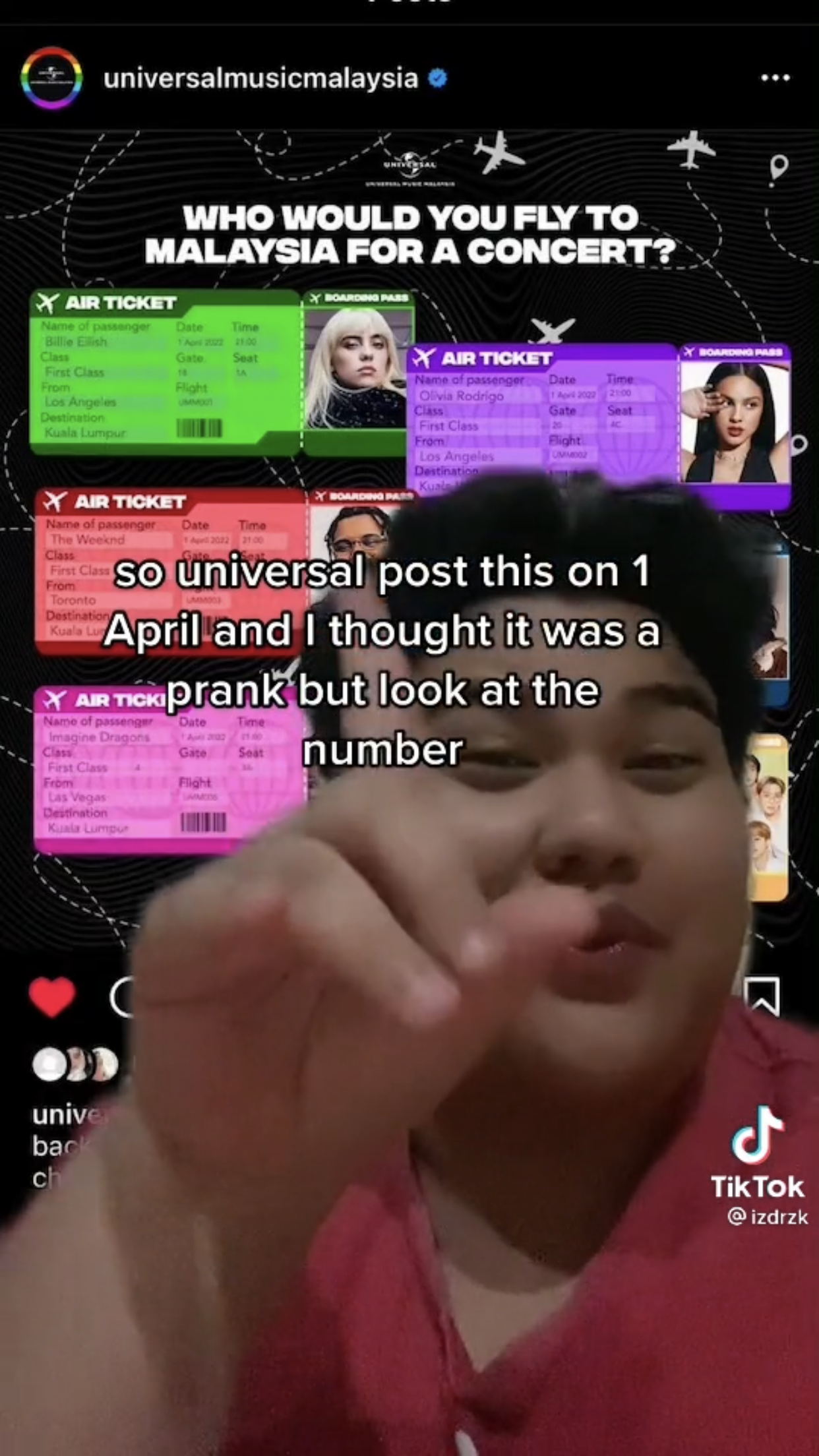 In the video, the user begins by referencing a photo that was posted by Universal Music Malaysia on their Instagram page this past March