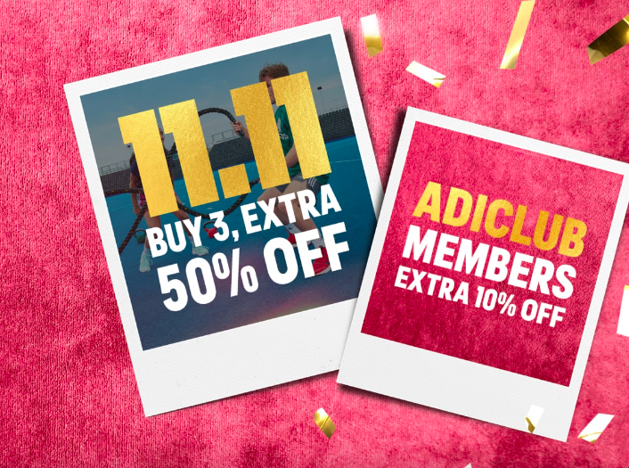 – Extra 10% off items for Adidas members on selected items.