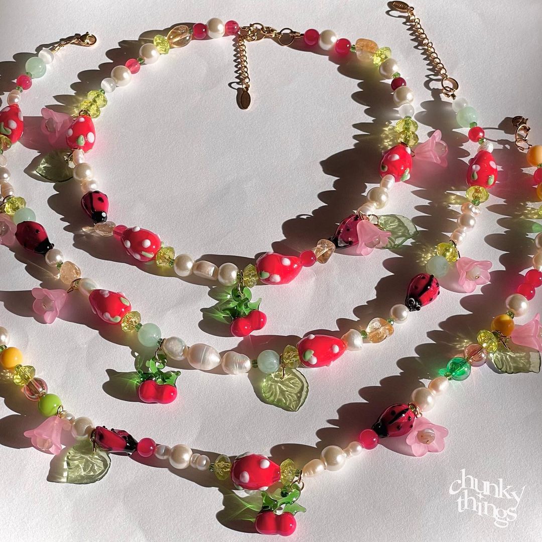 Ethically-made with gorgeous freshwater pearls, semi-precious stones, and glass beads on tarnish-resistant fittings, no two pieces from @cchunkythings are the same. The label makes thematic pieces, from Alice in Wonderland to color-coded ensembles, with their best-selling pieces being Lucid, Serendipity, and their Blooming Buds line (pictured above).