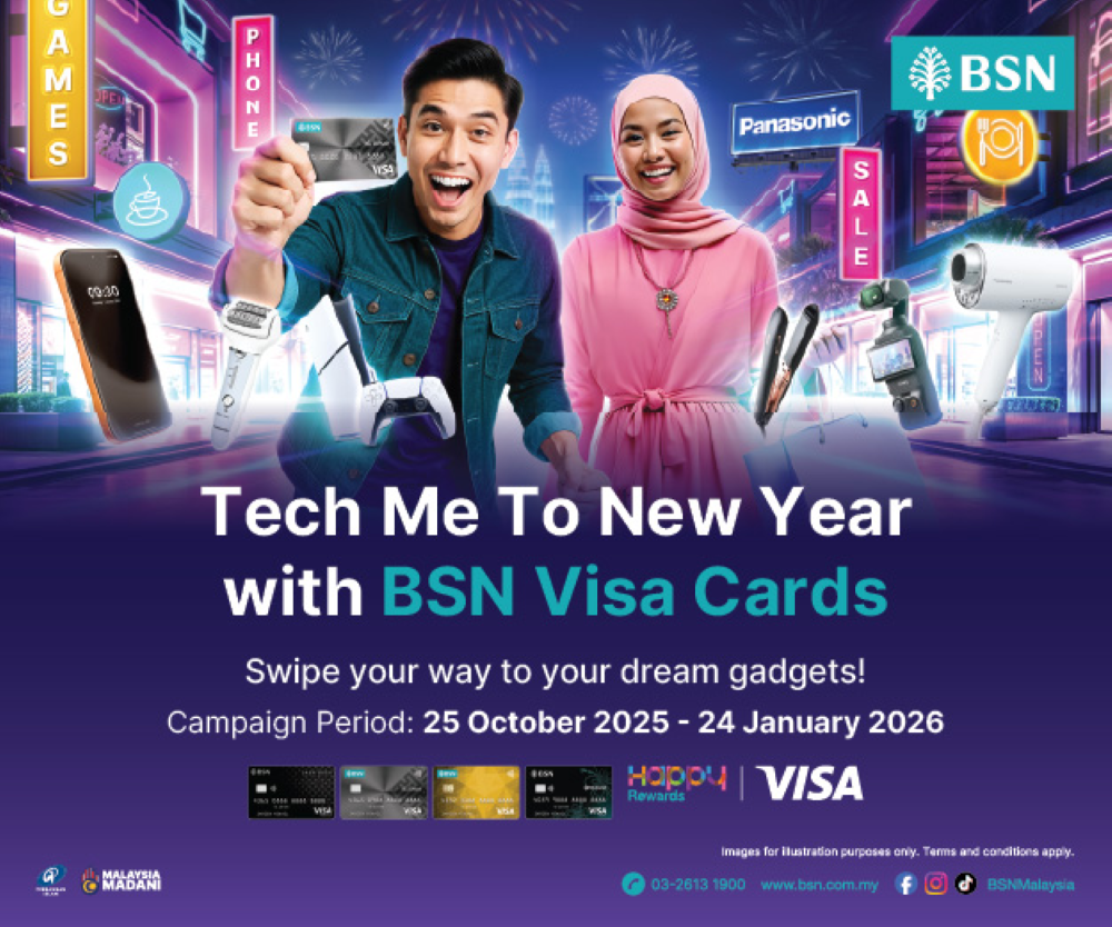 Every time you spend RM50 in a single receipt with your BSN Visa Debit or Credit Card, you'll automatically stand a chance to win the latest gadgets such as Panasonic appliances worth up to RM10,000, an iPhone 17 Pro Max, a Sony PS5, or a DJI Osmo Pocket 3.