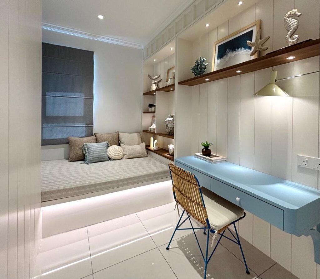 The show unit offers prospective buyers an immersive preview of the home's design philosophy, showcasing multiple nooks that balance shared living with pockets of private space for work, rest, or personal pursuits.