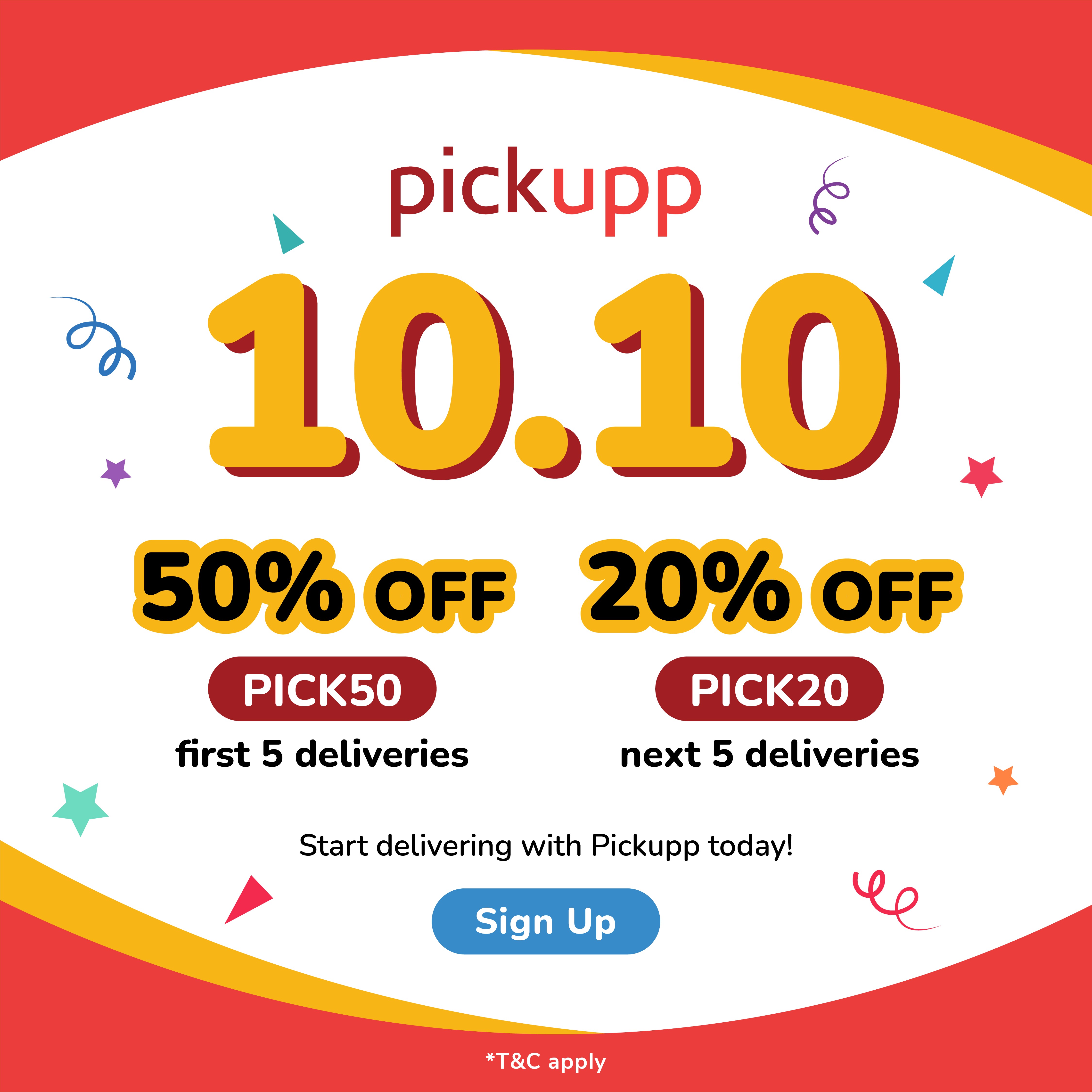 That's not all. When you sign up, you'll be able to enjoy 50% off your first five deliveries and 20% off on the next five deliveries, in conjunction with the 10.10 sale!