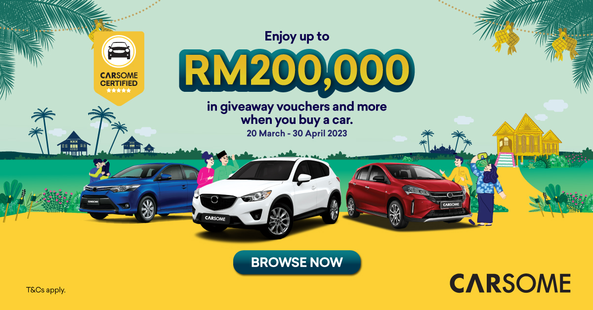 This Raya season, CARSOME is giving out promotion vouchers worth up to RM200,000, on top of other exciting deals. Woohoo! 😀
