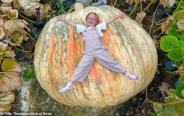 Winner of the Giant Vegetable Weigh-Off, it tips the scales at 1,279kg — about the weight of two bulls — and measures almost 6.5m in circumference!