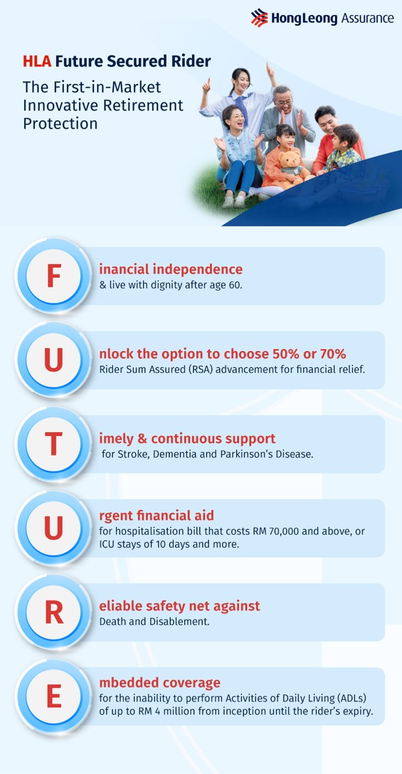 That's why Hong Leong Assurance (HLA) has launched HLA Future Secured, a retirement protection plan designed to give Malaysians greater peace of mind in their later years.