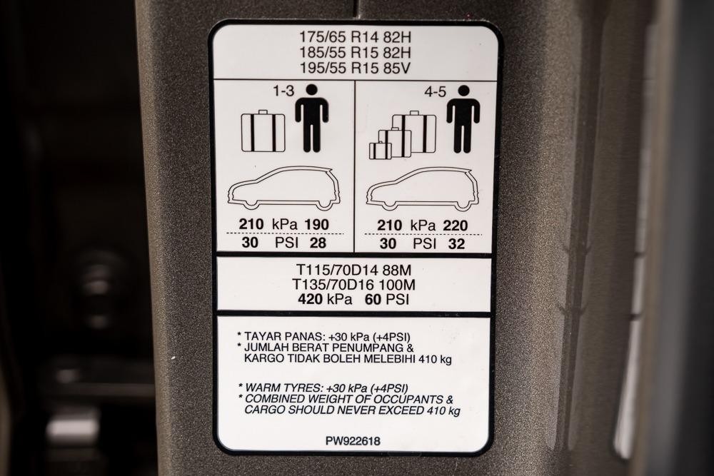 Most cars have a sticker inside the driver's door or fuel cap showing the recommended tyre pressure, measured in PSI or kPa. You can also find this information in your car manual.
