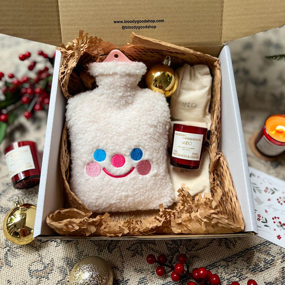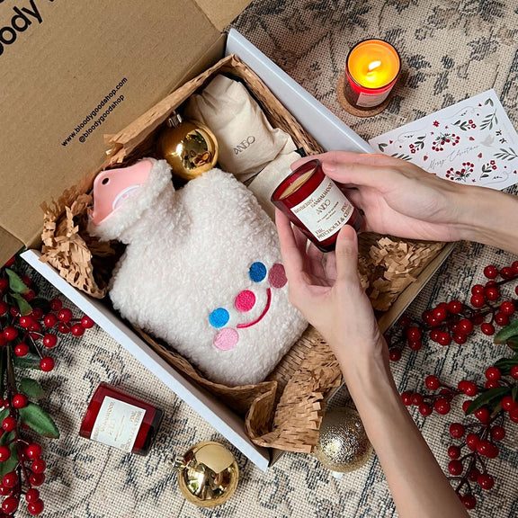 This year, they've released a special care package consisting of a hot water bottle for cramps, and a scented candle to help you unwind and relax if your monthly friend decides to visit during Christmas time.