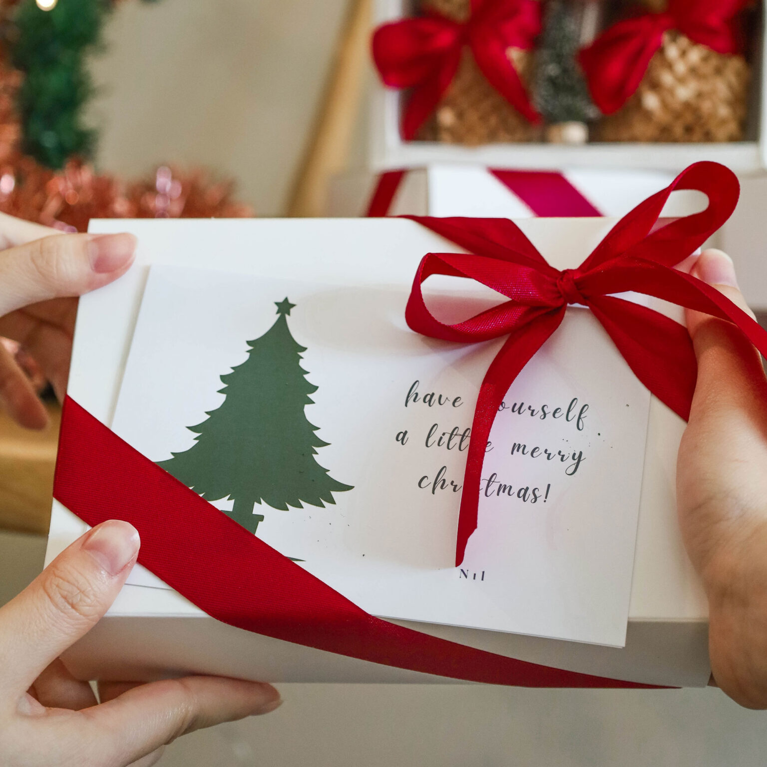 There are also Christmas cards packed inside the box if you order it wrapped, or have it packed outside if you want to write your own message, too!