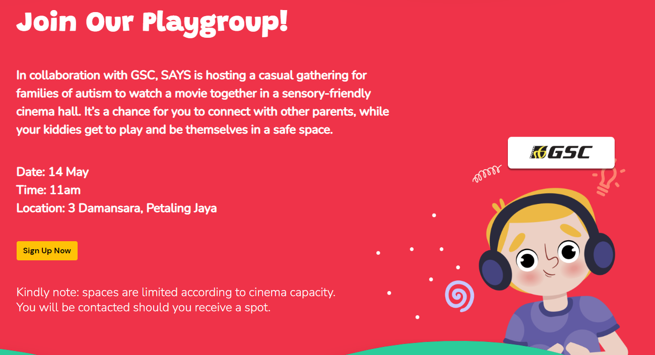 In line with this, SAYS will be hosting a special playgroup for children on the spectrum and their families, in collaboration with GSC, on Sunday, 14 May.