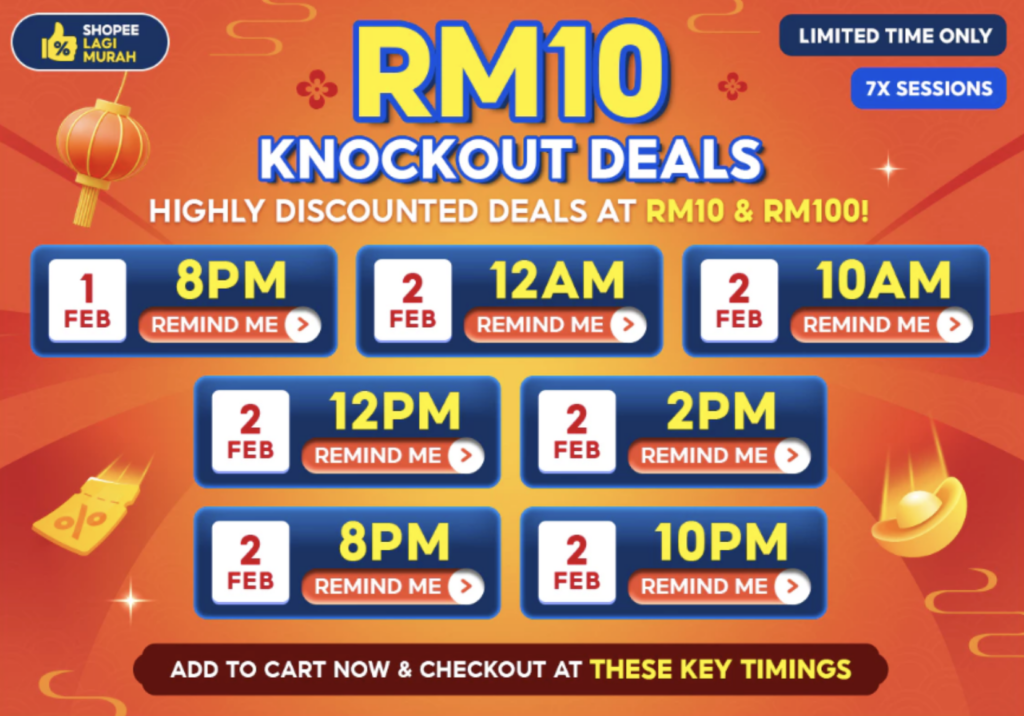 That's not all, Shoppers can unlock Knockout Vouchers worth up to RM800 at selected times throughout the sale