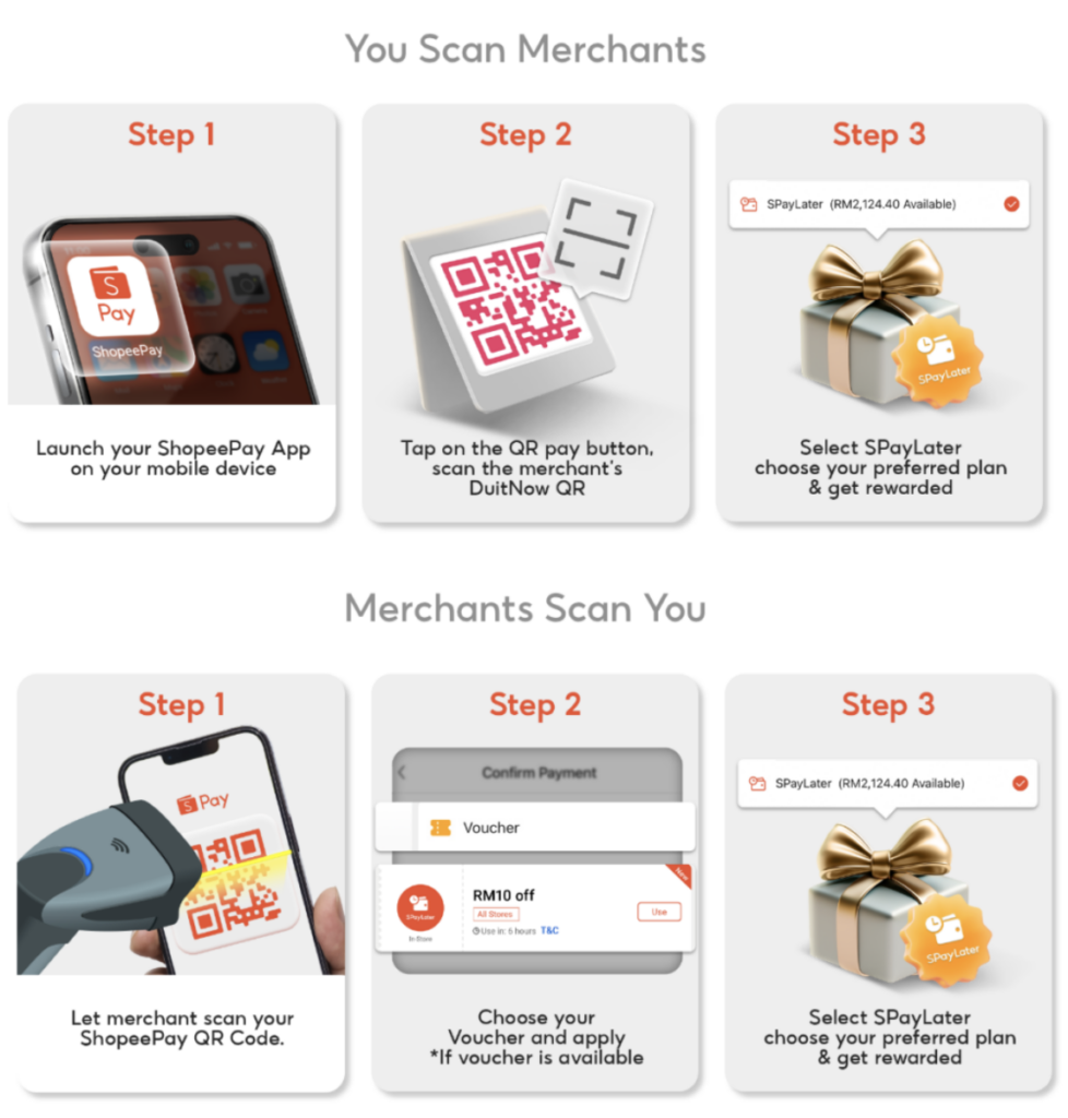 As long as you spot a DuitNow QR code, you can open the ShopeePay app, click on 'Scan & Pay', and select SPayLater as your payment method.