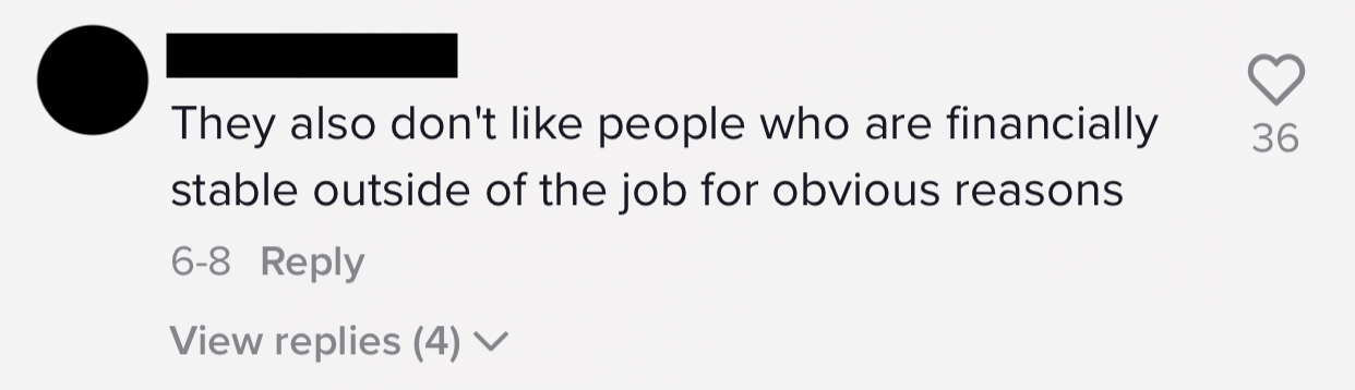 Among the comments was a user who stated that these big companies also do not like hiring candidates that are financially stable outside of work, as they would pose a risk to the employer, should they decide to leave.