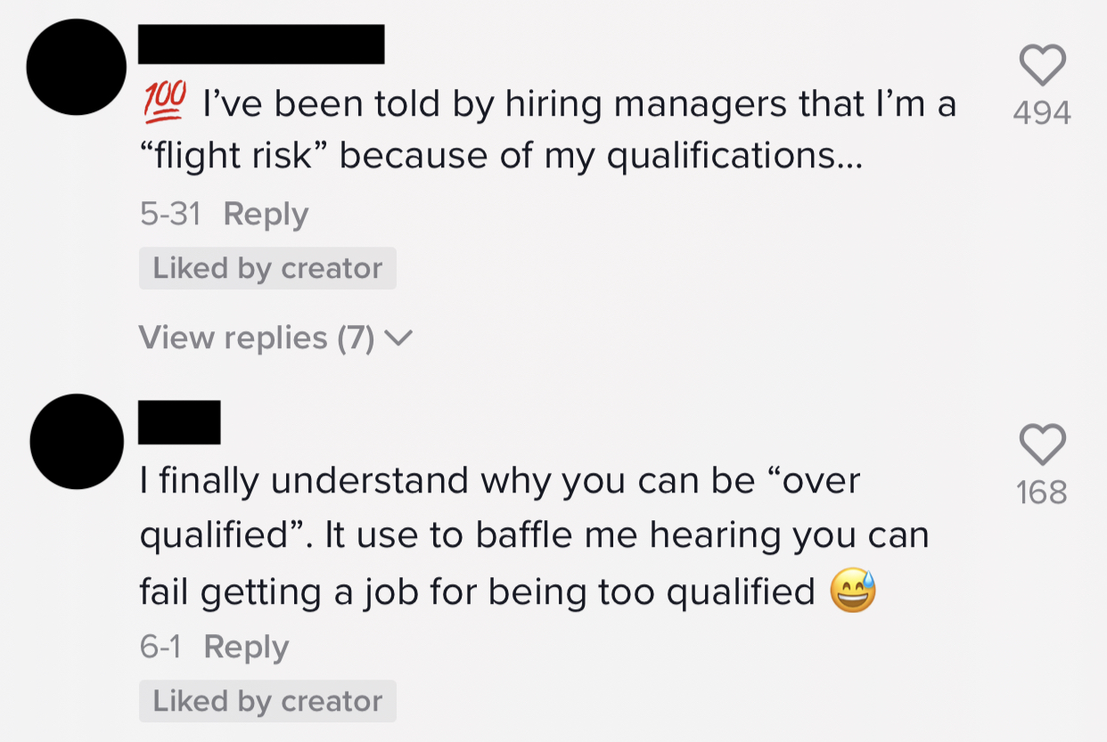 Job applicants also chimed in, with one user stating that they've been told by hiring managers during interviews that they pose a 'flight risk' to the company because of their qualifications.