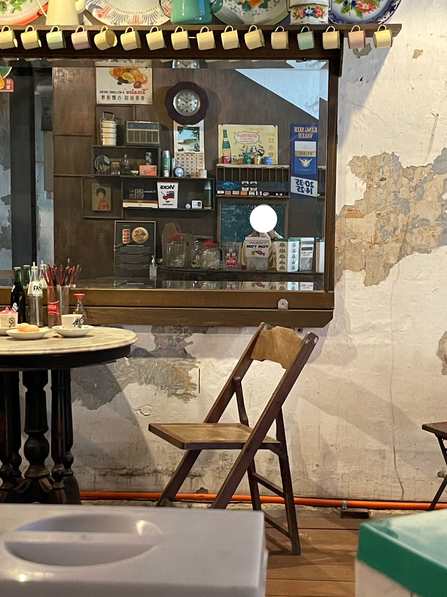 The floor also has a section that is designed to look like an old school kopitiam, complete with the table, chair, cash register, and kitchen — all of which are lined with items from the past