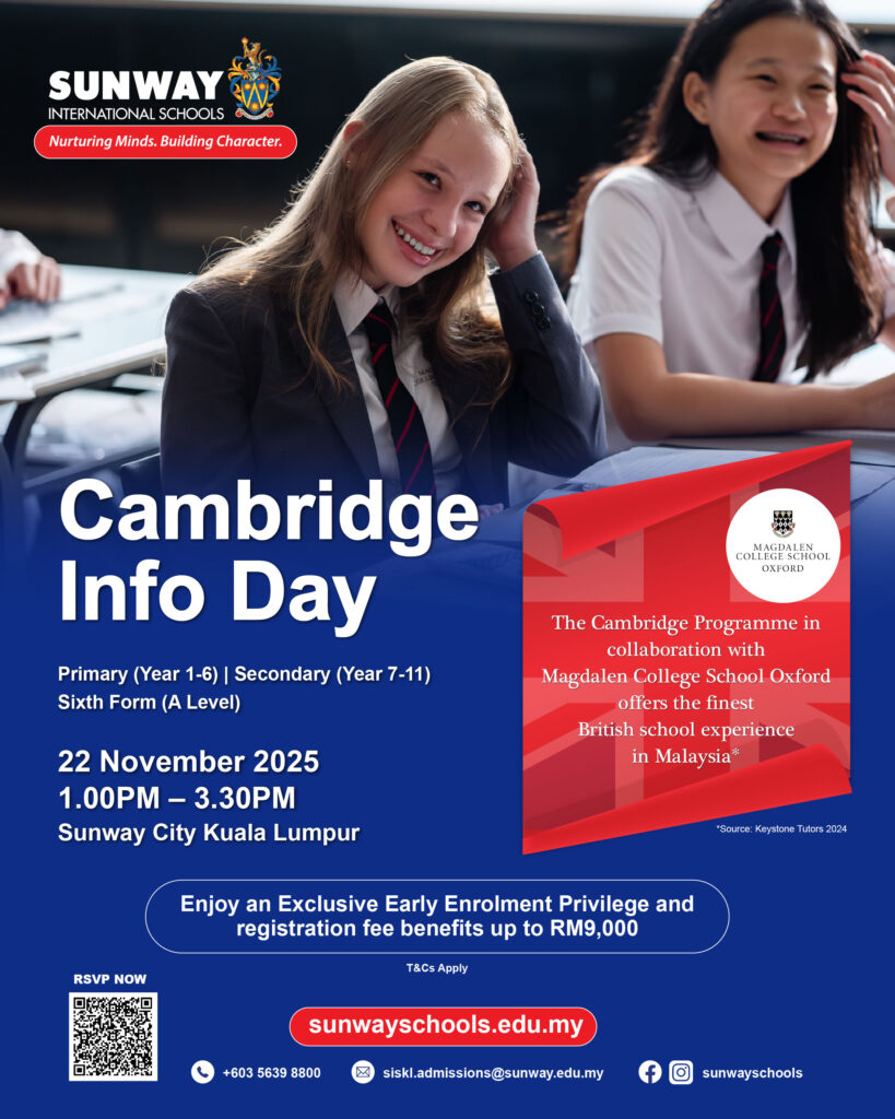 Sunway International School Kuala Lumpur (SISKL) is hosting its Cambridge Info Day on 22 November at Sunway City KL.