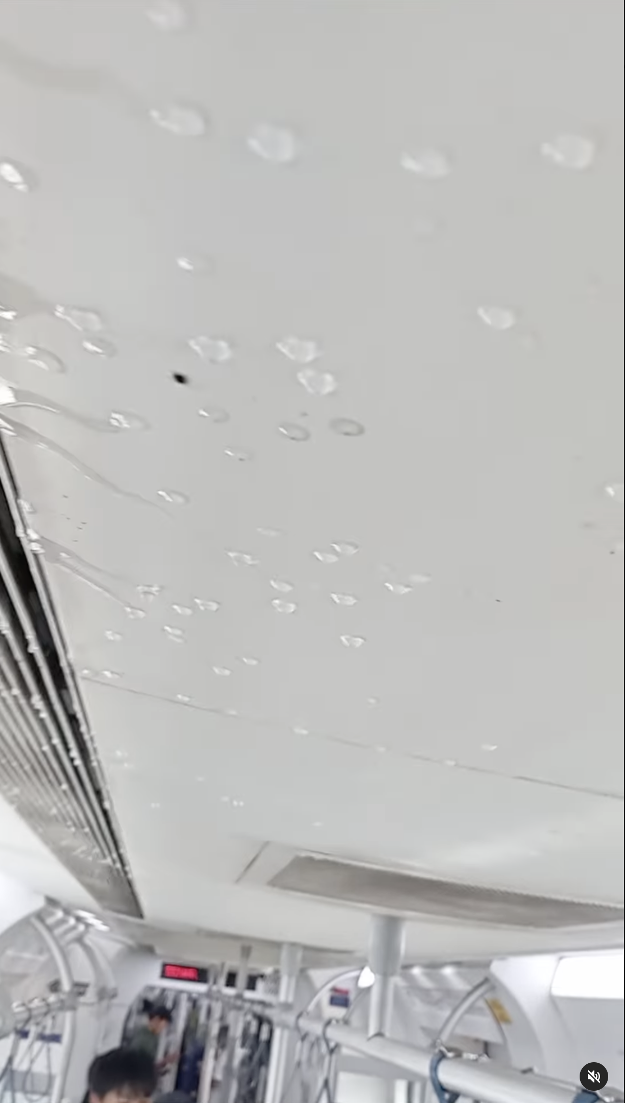 Annoyed, I decided to record the moment when the train started drizzling indoors. You can watch the passengers' ordeal here: