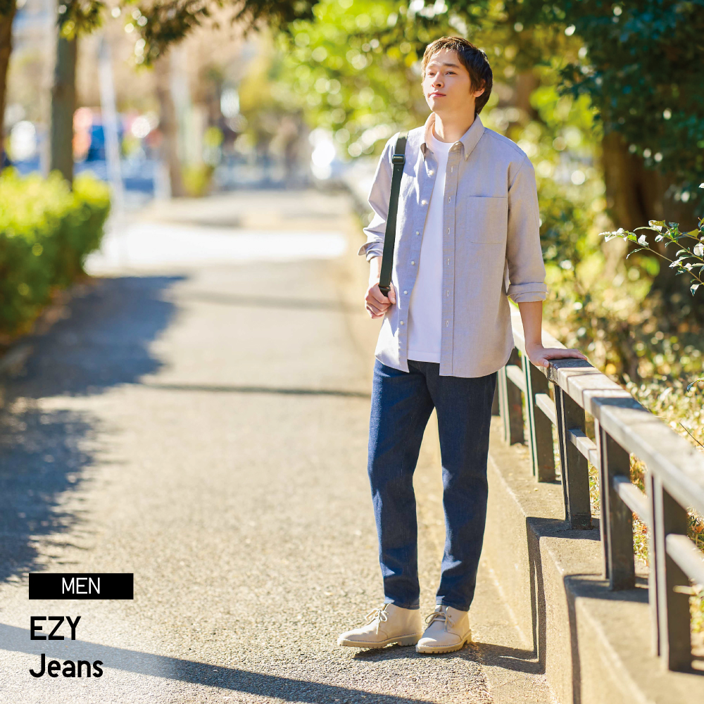 UNIQLO's EZY line is basically denim and trousers without the stiff, uncomfortable feel. These stretch beautifully, look sleek, and move with you — whether you're running errands or chasing deadlines.