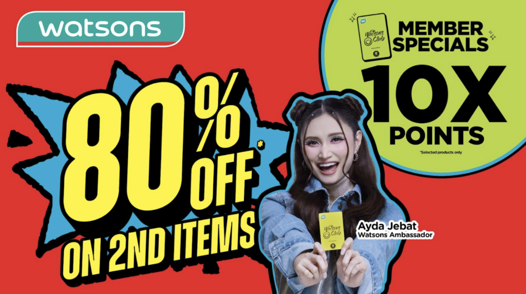 On selected skincare, personal care, health, and cosmetics products, Watsons is giving you up to 80% off your second item. Double the haul, double the savings, all in one trip.