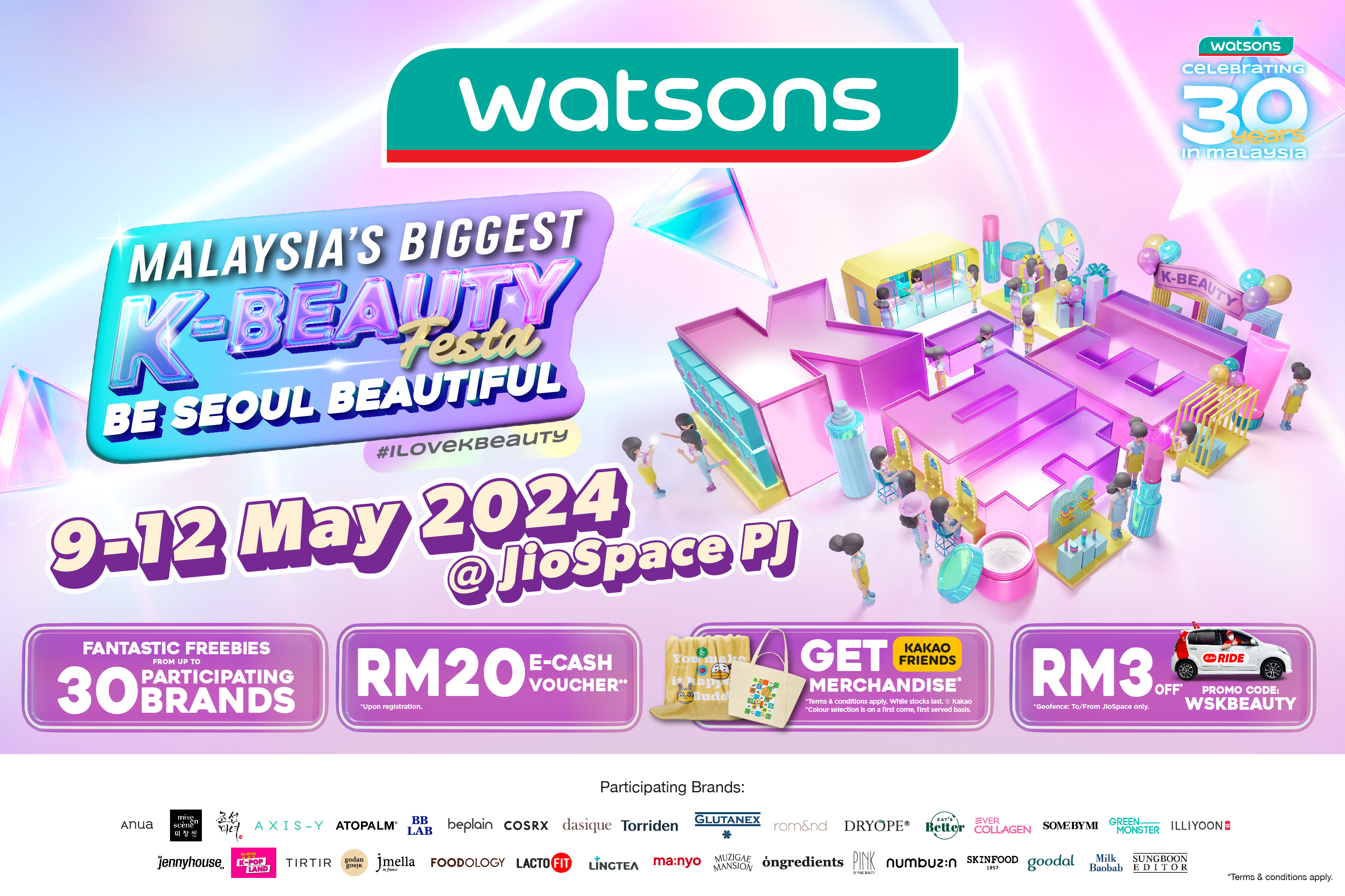 Apart from the grand prize of a trip to Korea, there are also other prizes to be won. Second prize winners will receive Korean health and beauty products worth up to RM500, and the third prize winners will get to attend a K-experience workshop exclusively organised by Watsons Malaysia.