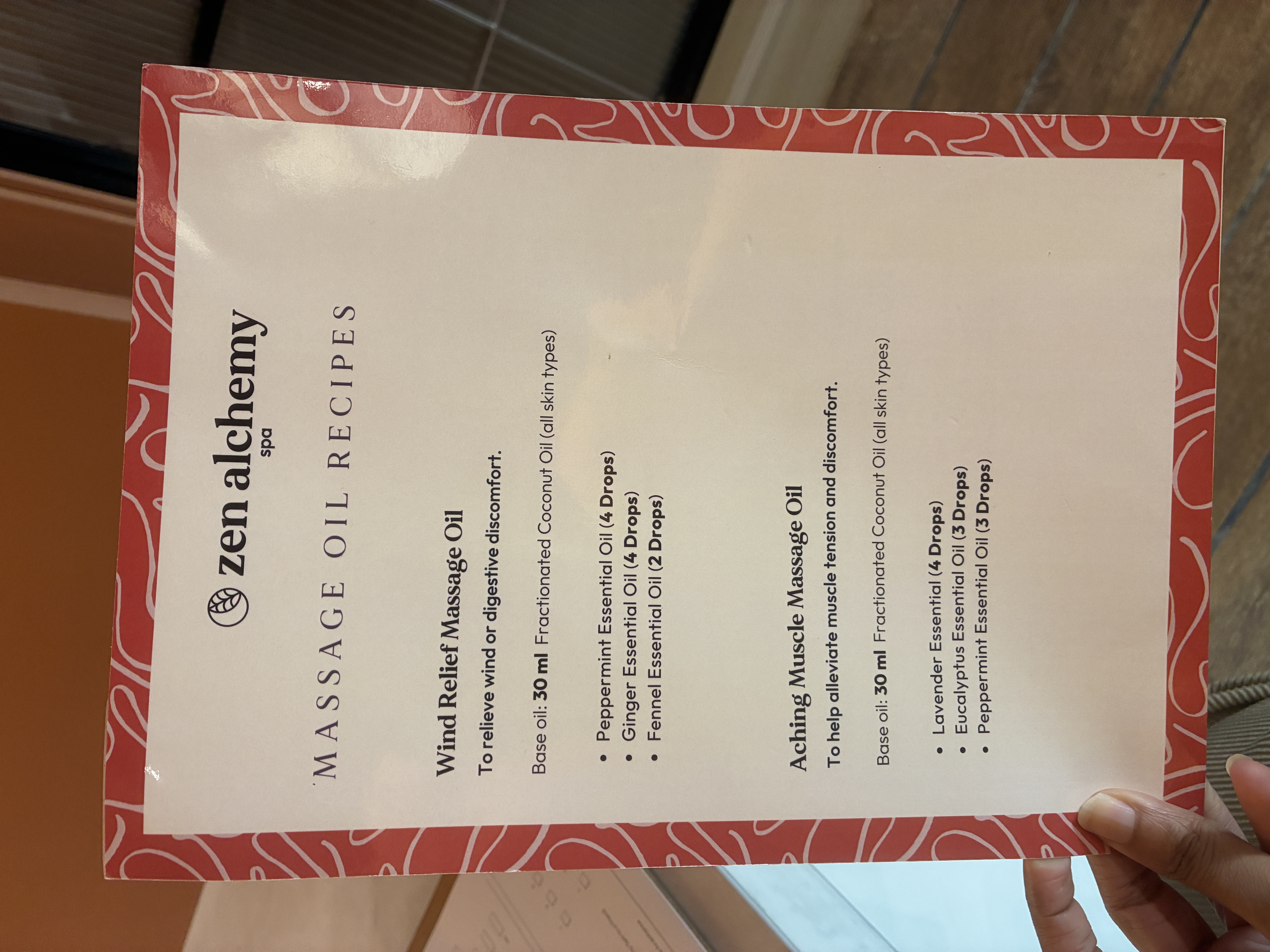 You'll be guided to pick your preferred massage oils, which the therapist then blends on the spot in front of you.