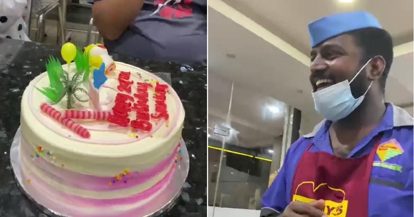 2. A family surprised their favourite mamak waiter with a birthday cake after learning he was going back to his home country