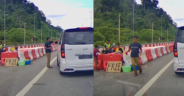 "They're so nice to do this during the traffic jam. No stalls were open on the first day of Hari Raya (Aidiladha), so they gave away free drinks," wrote the TikTok user who saw him.