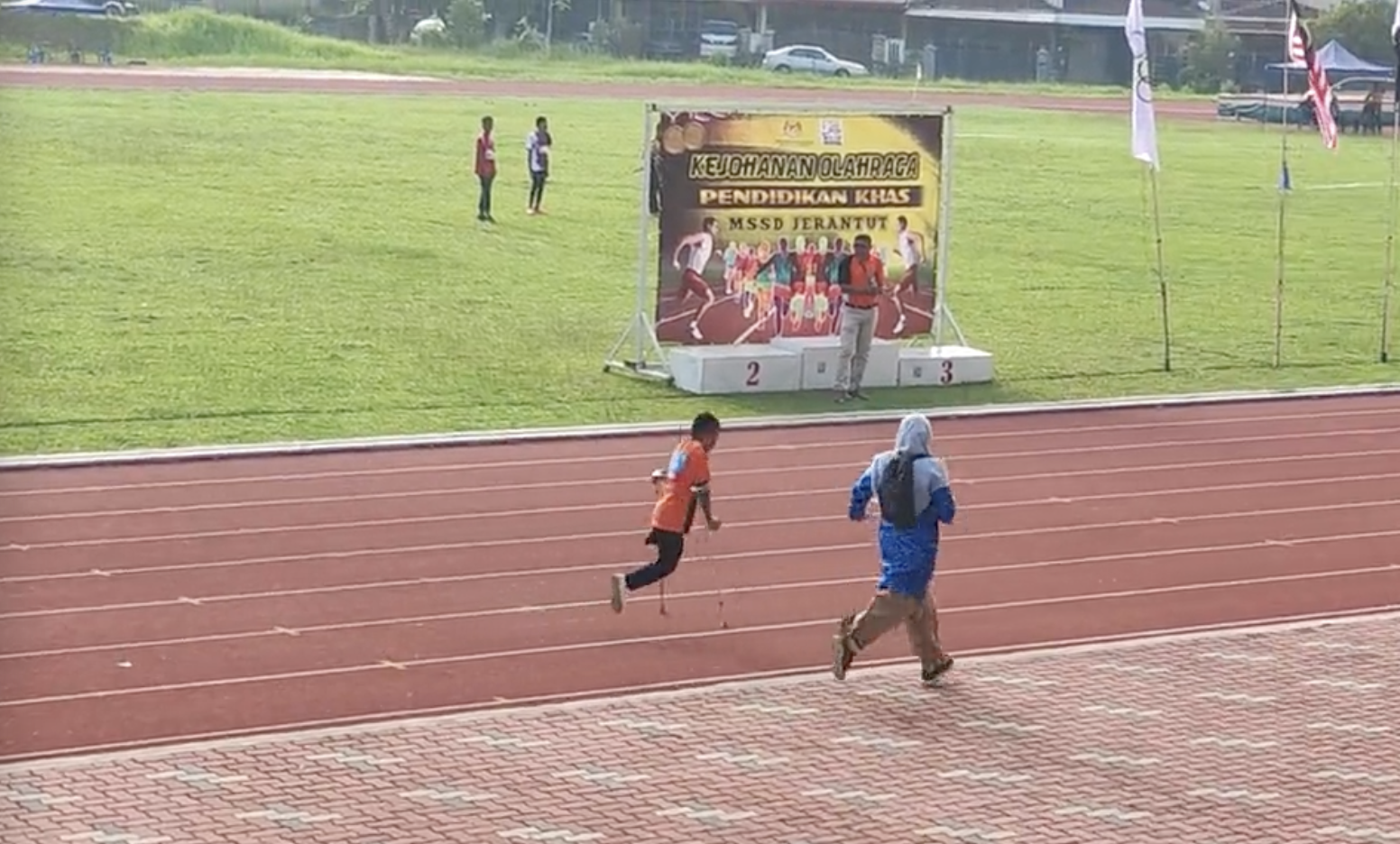"Previously, Aqil did not participate in sports due to his physical disability, but when I asked him if he wanted to take part, he agreed," said Cikgu Intan, who won an award for her touching deed.