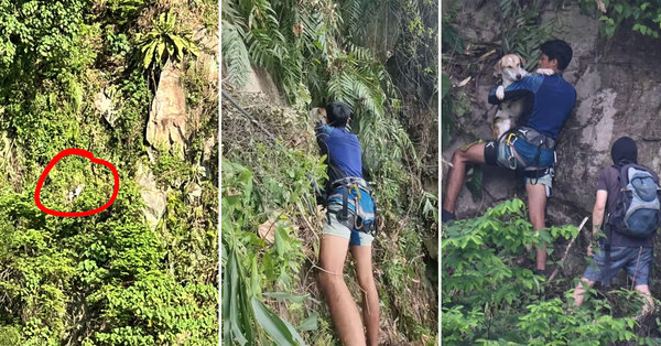 6. A group of Malaysians spent eight hours attempting to save a dog that was stranded on a cliff in Petaling Jaya