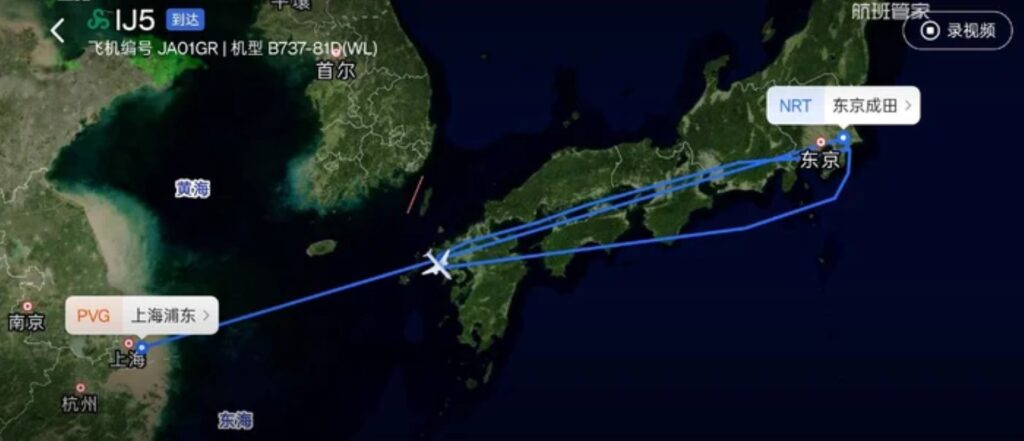 It landed at Narita International Airport at 10.40pm, approximately 1 hour and 40 minutes after take-off, and police subsequently removed the passenger.