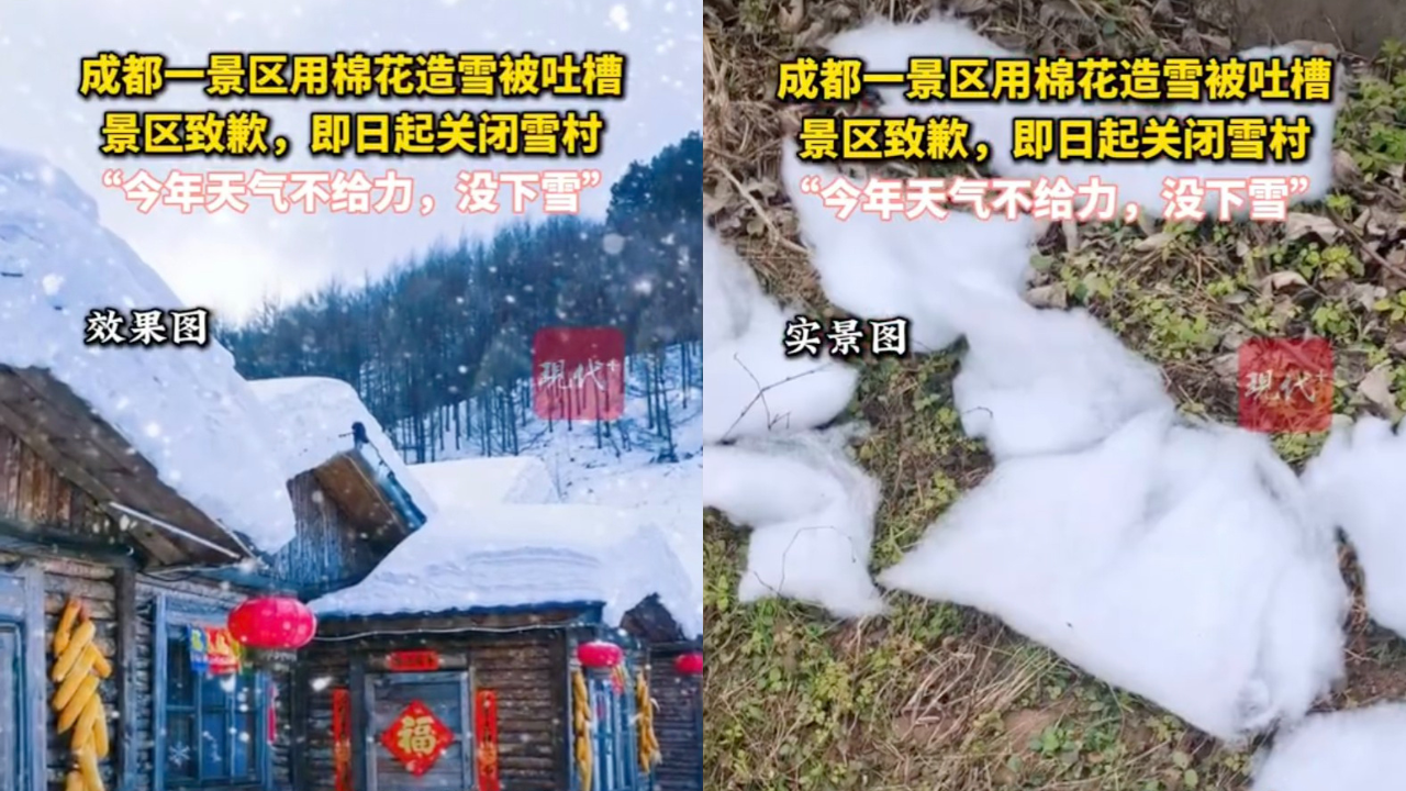 Chengdu Snow Village, a newly launched site in Sichuan province, attempted to create a winter wonderland despite the lack of real snow, only to face backlash from disappointed visitors.
