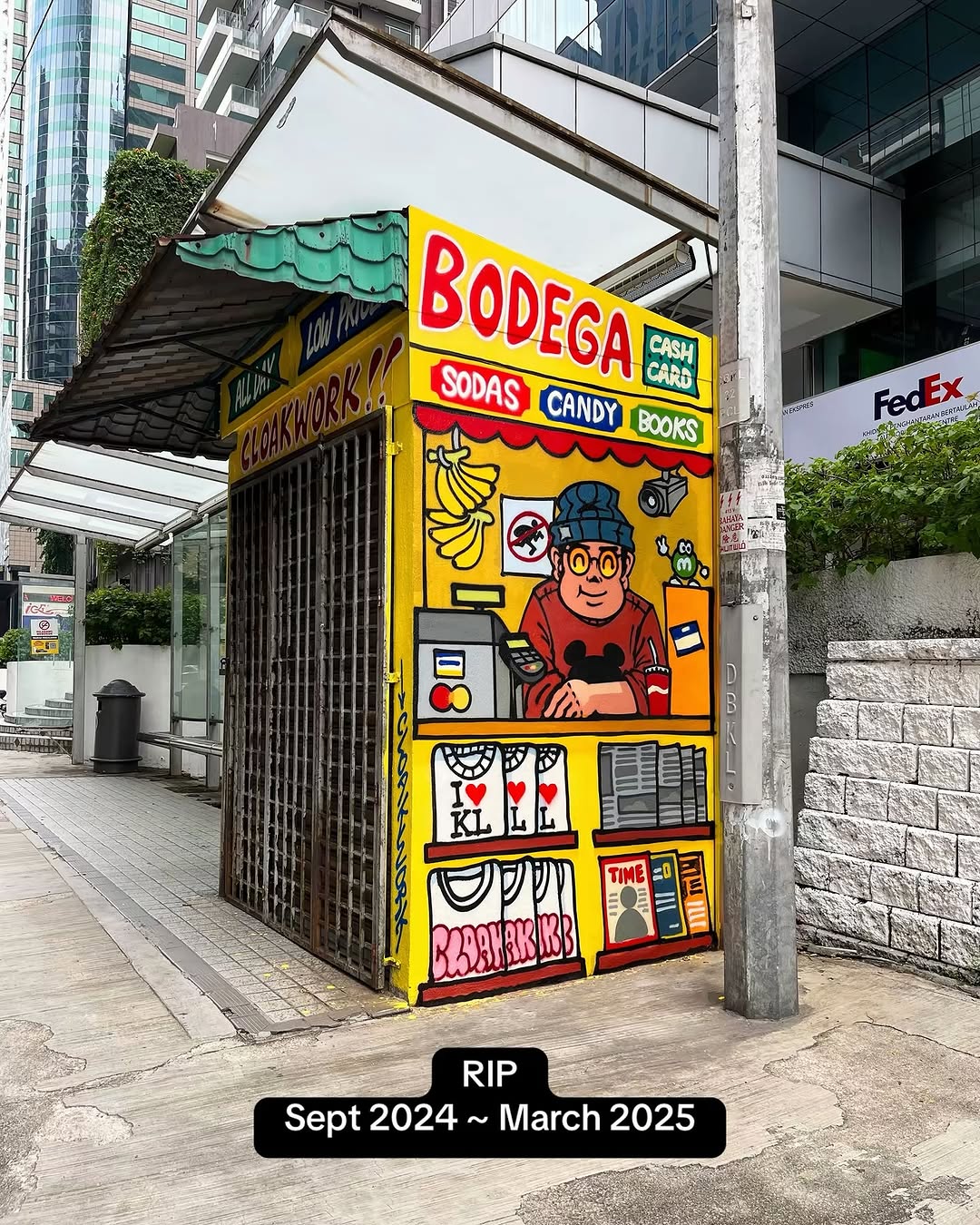 "Dear DBKL Malaysia, why did you remove my art? These old-fashioned bus stops, with traditional mini shops attached, were originally built by the government to support the underprivileged. They allowed people to sell items like sodas, coolers, snacks, and more, often catering to bus passengers or taxi drivers waiting nearby," he wrote.
