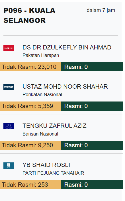 #GE15 Unofficial Result: Dr Dzul’s Votes In Kuala Selangor Are 2x More Than Zafrul’s