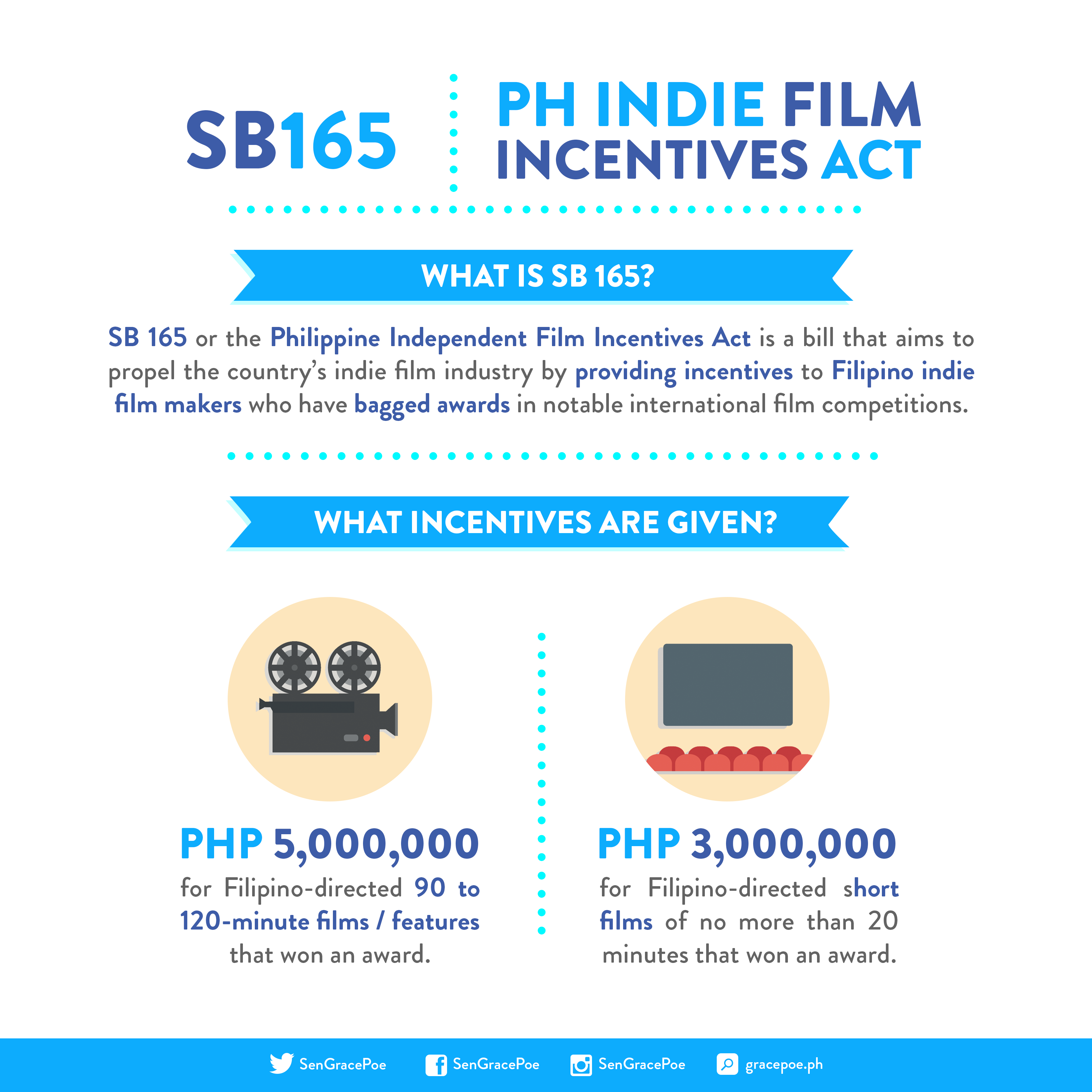 On 20 July, Senator [Grace Poe] (http://says.com/ph/news/you-can-t-leave-home-without-this-cheat-sheet-on-may-9) filed Senate Bill 165 (SB165), or the Philippine Independent Film Incentives Act!