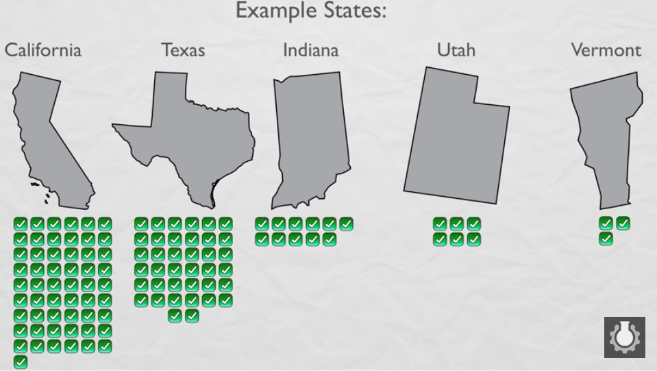 Negara bagian dengan populasi besar seperti California mendapat lebih banyak elector dibanding negara bagian dengan populasi kecil