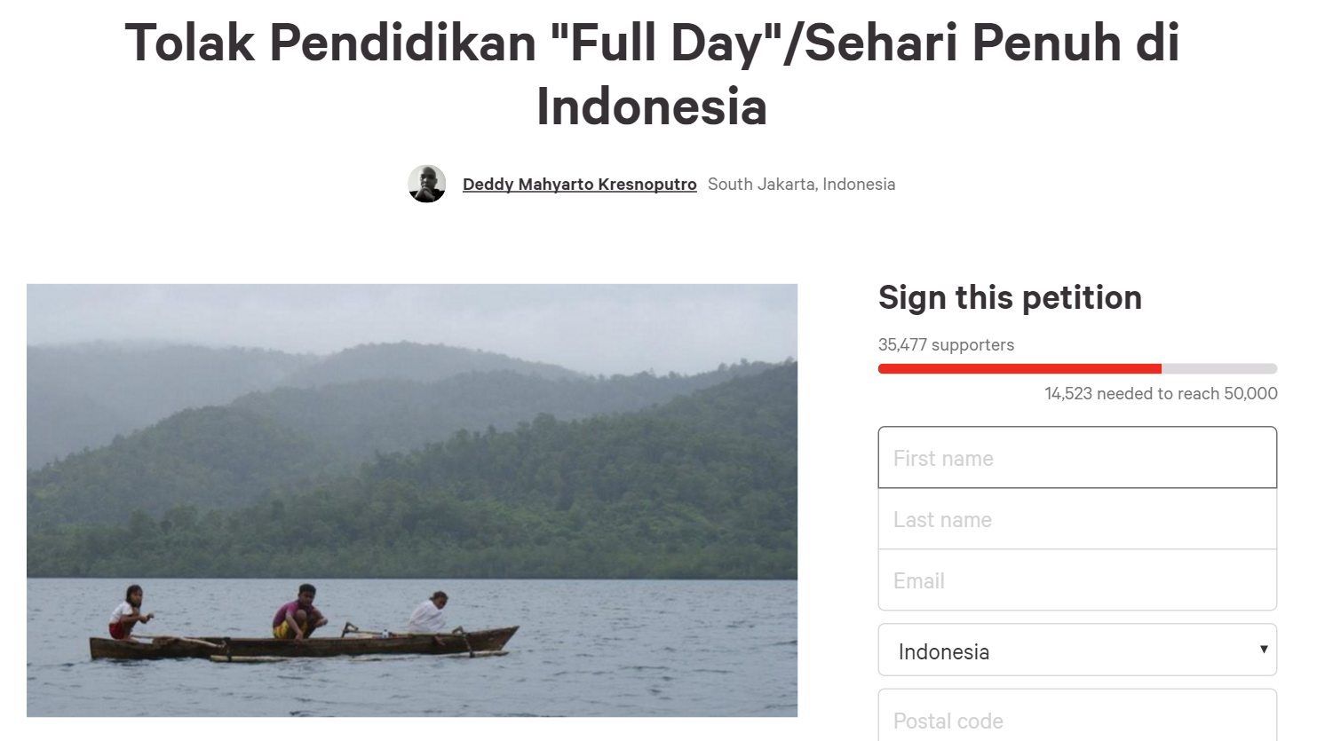 Para orang tua bahkan mengajukan petisi untuk menolak full day school
