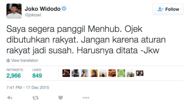 Akhirnya, larangan inipun [dicabut dalam waktu kurang dari 24 jam] (http://industri.bisnis.com/read/20151218/98/503097/setelah-menuai-protes-jonan-akhirnya-mencabut-aturan-pelarangan-gojek-cs) setelah dipublikasikan