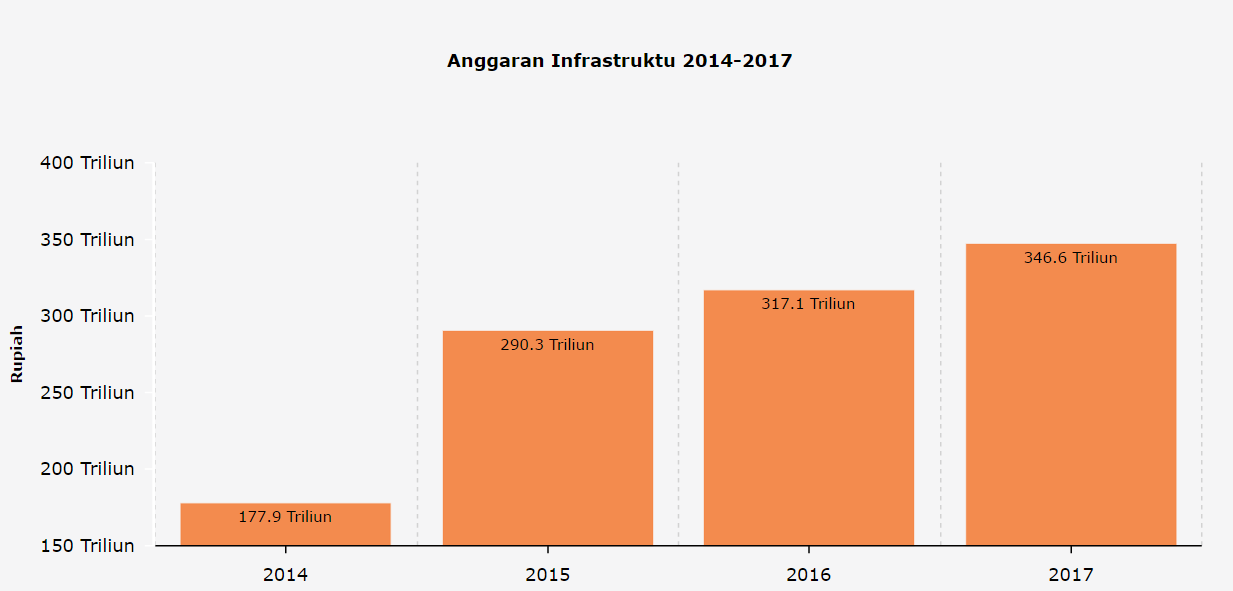 Anggaran pembangunan infrastruktur meningkat drastis pada tahun 2015, dan dilanjutkan pada tahun-tahun setelahnya