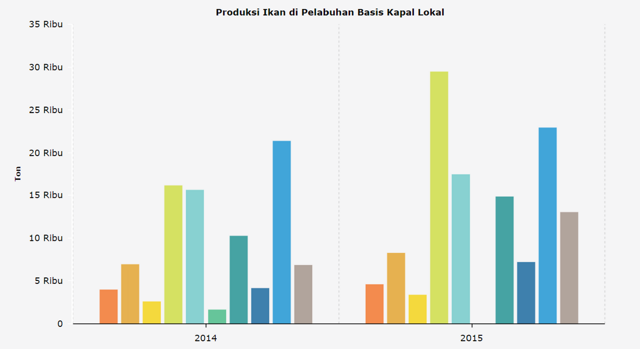 Grafik menunjukkan peningkatan produksi di pelabuhan-pelabuhan yang digunakan kapal-kapal nelayan lokal
