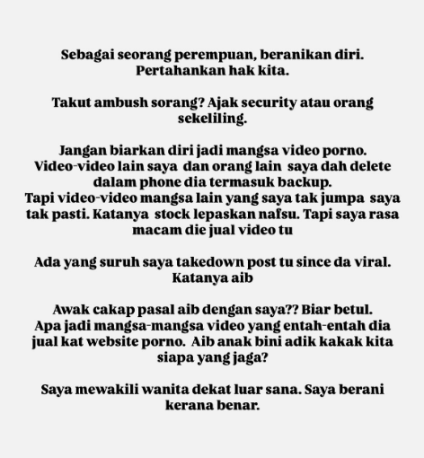 In an update post, Erny encouraged women to be courageous and not be victims of sexual exploitation