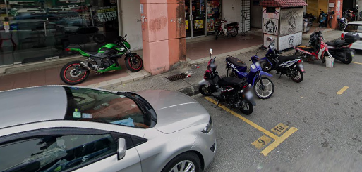 Granted, while this does not mean that the motorcycles were there at the time this video was taken, it is not uncommon to see motorcycles parking on the walkway in front of shop lots in Malaysia.