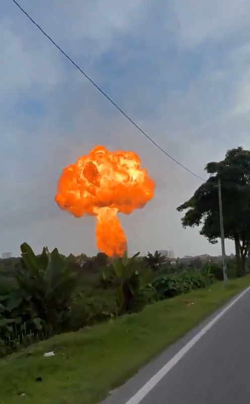 During the explosion, flames soared hundreds of metres into the air, forming a mushroom-shaped fireball.