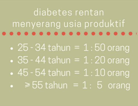 Untuk usia 25-34 tahun saja misalnya, dari setiap 50 orang terdapat setidaknya 1 orang yang terkena diabetes. Jangan sampai itu kamu.