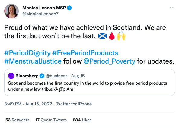 The Period Products bill was unanimously passed in November 2020, and as of Monday, 15 August this year, it was officially passed as law by Scottish legislators.