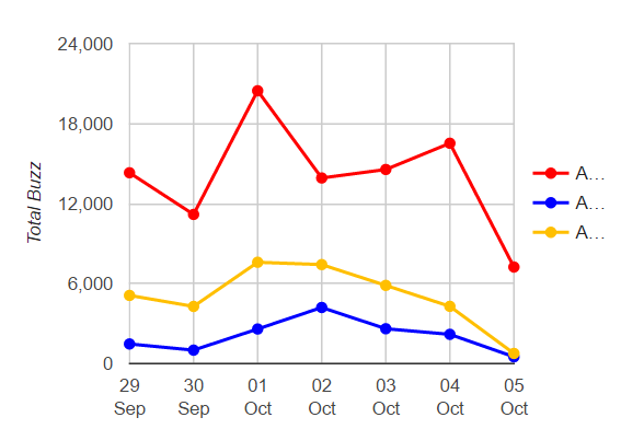 **Dari grafik ini terlihat komentar untuk pasangan Ahok-Djarot selalu berada diatas pasangan lain secara signifikan**. Untuk tanggal 4 Oktober kemarin misalnya, jumlah komentar untuk pasangan Ahok-Djarot mencapai 16.521 komentar. Di urutan kedua, jumlah komentar untuk pasangan Anies-Sandiaga hanya seperempatnya, yakni 4.294 komentar. Di urutan terakhir adalah pasangan Agus-Sylviana yang hanya dikomentari sebanyak 2.194 komentar.